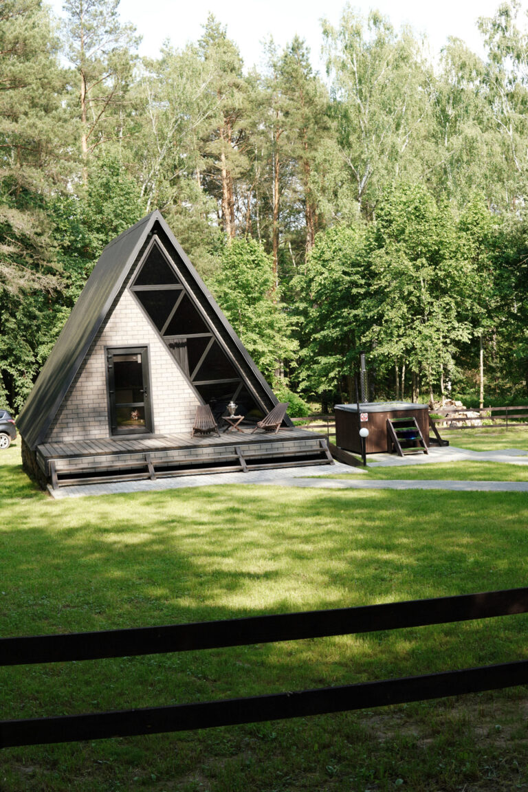 Лучшее место среди соснового леса, в далеке от соседей для незабываемых выходных недалеко от Могилева. До 4-х человек. Дом A-frame, горячая купель, баня, место для барбекю, Локация у костра, и сеновал…