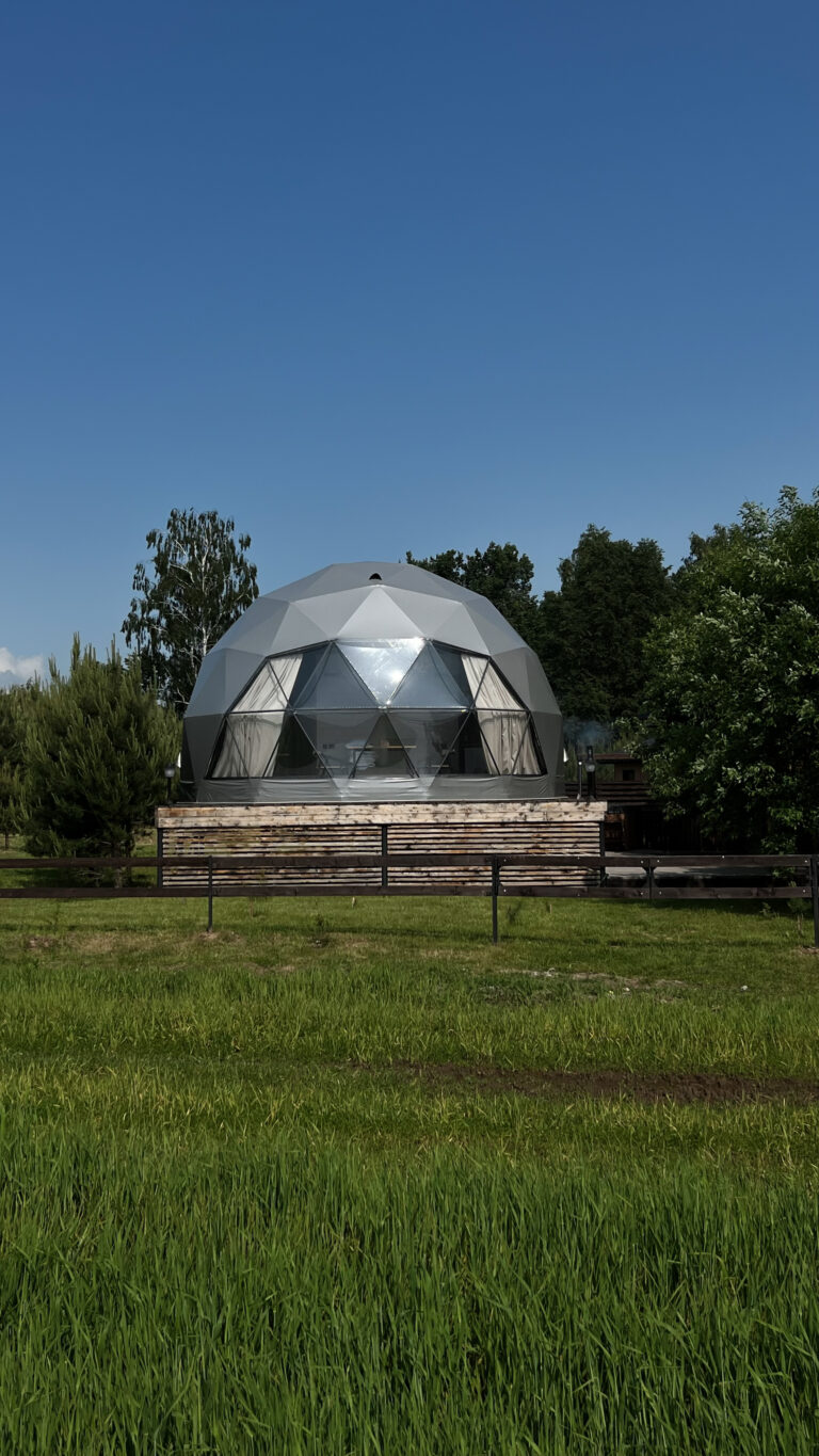 Первый в Могилёве дом в виде шара. Уникальное дизайнерское решение подарит вам незабываемые впечатления от отдыха! Дом-Шар, горячая купель, баня сухого пара, качели, место для барбекю…